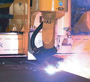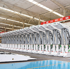 數(shù)控落地鏜銑床TH6920,采用西門子公司數(shù)控系統(tǒng),刀庫(kù)容量40把。配合回轉(zhuǎn)工作臺(tái)使用,更好地保證關(guān)鍵結(jié)構(gòu)件的形位公差要求,可完成采煤機(jī)大型結(jié)構(gòu)件的精加工,加工精度達(dá)6級(jí)